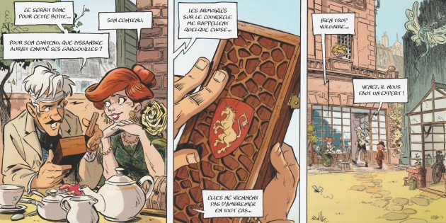 plus traumatisant. Ensemble, ils s'interrogent sur l'attaque qu'ils viennent de subir. La seule chose qui a disparu, c’est le contenu de la mystérieuse boîte que l’espionne cambrioleuse a dérobé chez Ruycours. Pour en apprendre davantage sur le mystérieux blason ornant la boîte, le duo fait appel à Palissière qui remonte jusqu'à la légende de Tarquin : le Dragon aurait été tué par Anselme l’ancien afin de venger la Mère des Licornes. Le problème est que ce mage ancien appartenait à la famille Latour-Fondval dont la chronique familiale a été empruntée par Louis pour le compte de la comtesse Cécile de Brescieux. Tout porte donc à croire que la comtesse, la fée renégate et le mage ont mit le doigt sur un complot d’état concernant Ambremer et la reine noire…