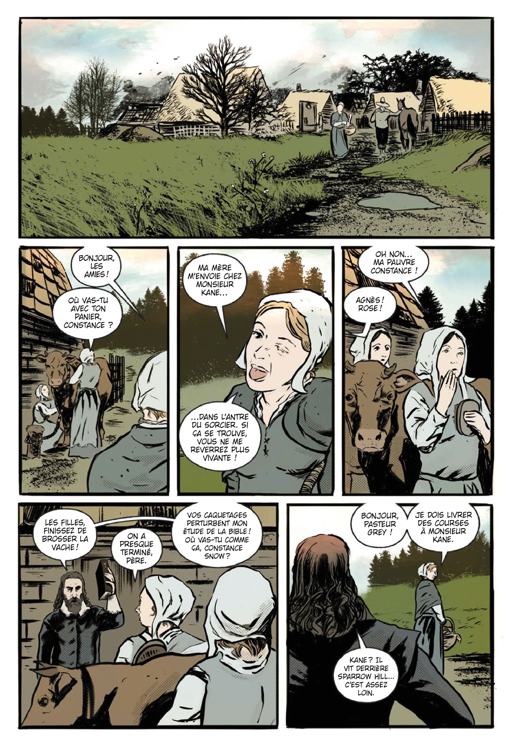 Elizabeth Kane est décédée en 1603. Depuis ce jour, son mari Solomon Kane ne cesse de se recueillir sur sa tombe. Mais l’homme est étrange, toujours vêtu de noir avec un large chapeau cachant son visage et se soutenant avec une canne ornée d’une sculpture à l’allure maléfique. Les rumeurs et les ragots font de lui un personnage mystérieux le faisant passer pour un dangereux sorcier. La jeune Constance Snow sans connaître l’homme ne cesse de raconter des histoires à son sujet. Alors qu’elle est en pleine discussion avec ses amis, son père fermier la somme d’arrêter de raconter des sornettes et l’envoie faire une livraison à Monsieur Kane. Pour arriver à la maison isolée du soit disant sorcier, Constance doit passer par un bois. Il se fait tard mais elle croise son amie Lily Eggers qui comme toujours est accompagnée de son bouc. Les deux jeunes femmes discutent et Lily commence à séduire la jeune Constance en lui disant tout le désir qu’elle a pour elle. Elle finit par sortir un sein de son corsage pour lui prouver ses intentions, tout en lui disant de se méfier de Solomon Kane et de sa sorcellerie.