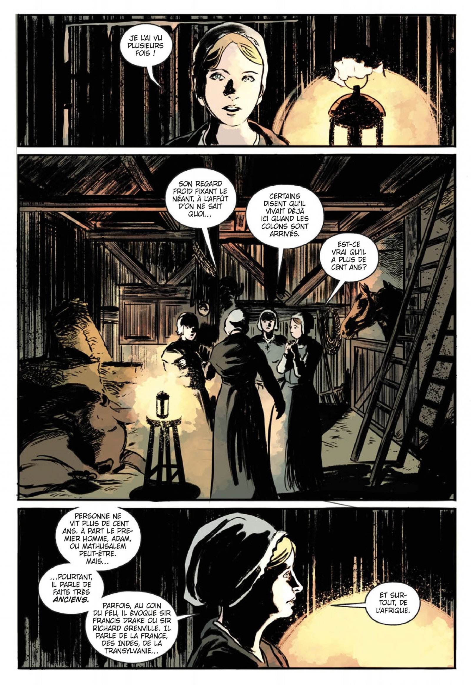 Un récit un peu difficile à maîtriser sans concentration d’autant que le dessin de Jaime Infante est quant à lui sombre avec un découpage brut d’une case, une information. Mais l’avantage est que le dessinateur réussit à mettre en place quelques scènes gore ou encore des scènes pour exprimer la folie qui sont notables. Restez concentrés et se soyez pas perturbés par le Malin pour bien savourer cette histoire qui rend indirectement hommage au puritain.