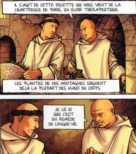 L’histoire de la Grande Chartreuse, il cherche à percer le mystère de l’élixir qui y est fabriqué.