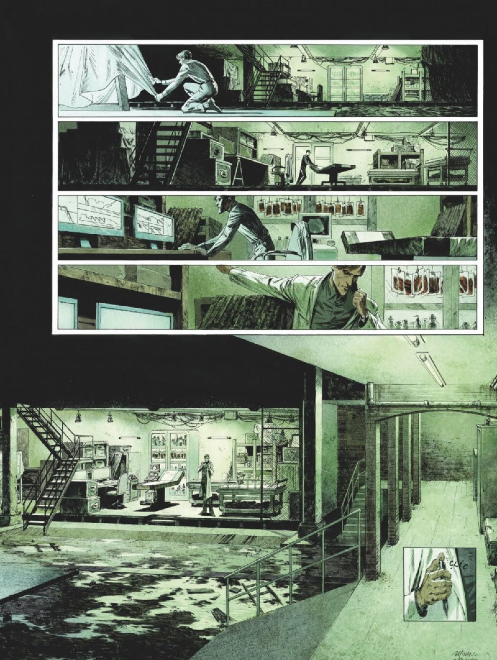 Dès les premières planches, Mathieu Gabella (scénariste notamment de La Licorne, Le Bourreau, Conan) plonge son lectorat dans une ambiance glauque et mafieuse, où la violence fait partie du quotidien et où tout peut s’embraser à tout moment. Tout porte à croire que l’histoire s’oriente vers une intrigue policière, une enquête dans les bas-fonds. Or, l’arrivée de Zacharie bouleverse l’échiquier : le récit bascule alors vers un huis clos fantastique au sein du cabinet médical d’Alexandre.