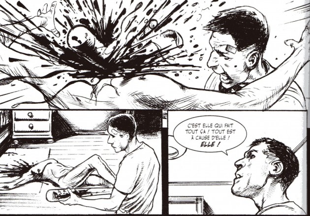 Le noir et blanc convient parfaitement à un récit d’horreur, la combinaison du dessin et de l’encrage suffit à nous mettre dans une ambiance sombre et tendue. Le découpage dynamique très comics, ainsi que les nombreux cadrages sur les visages terrifiés des personnages contribuent à nous faire partager leurs émotions et à nous en faire ressentir toute l’horreur.