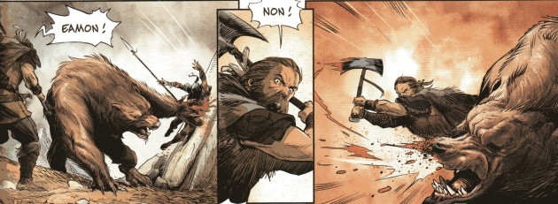 Elric, deux séries chères à mon cœur, s’associent, cela éveille mon intérêt… Si le thème post-apocalyptique a déjà beaucoup été exploité, la majorité des séries se situent à l’époque contemporaine ou dans un avenir proche. En situant leur apocalypse en l’an mille, non seulement ils lui donnent une dimension eschatologique (mais aura-t-on une explication sur l’origine de la catastrophe ?) mais ils redéfinissent aussi le précepte de départ. Reconstruire une civilisation sur les ruines du Moyen-âge n’est pas du tout la même chose que de le faire à partir d’un monde moderne. La question est de savoir à quel point ce concept original sera exploité, les mentalités médiévales (société de castes féodales, importance du religieux, place de la femme…) ne semble pas pour l’instant avoir eu beaucoup d’influence sur les clans survivants et c’est dommage.
