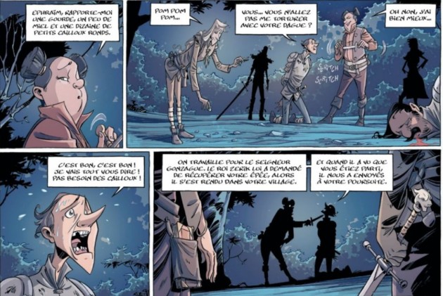 Preux qui aident à la princesse Cassia a fait régner la paix sur tout le royaume de Pesh durant 4 années ! Tout cela pourrait nous laisser penser qu'on a encore à faire à un récit d'initiation comme il en existe tant. Mais l'écrivain Olivier Gay, devenu scénariste par la grâce de Christophe Arleston, insère une petite touche de fraîcheur, toute juvénile, totalement bienvenue. Ces quatre apprentis sont littéralement nuls, indiscutablement indécrottables ! Et pourtant, le chevalier Tomas, la sorcière Lamia, le guérisseur Ephraïm et l'espionne Iris font de leur mieux ! C’est seulement qu'à fondletang, ils peuvent prendre leur temps : aucune pression, aucune menace d'aucune sorte. Mais, comme il faut bien un élément perturbateur, il va prendre la forme d'une missive venue de la capitale. Les maîtres partis, depuis longtemps, leurs apprentis décident d'aller à leur secours. C'est cette mission sauvetage qui va occuper la majeure partie des péripéties. Elles ne manquent pas de charme ni de rythme et elles permettront à tous de prendre confiance en eux, de comprendre que tout le monde a les capacités pour accomplir de grandes choses. Une façon de mettre une adéquation le fond et la forme. Chaque personnage est clairement identifié et on notera la volonté de montrer une certaine diversité. On la retrouve d'ailleurs dans le trait d’Olivier Boiscommun. Grâce à une tonalité caricaturale, à la limite du cartoonesque, les personnages sont très attachants. Les gentils sont gentils et les méchants méchants. Quant aux personnages secondaires, ils ne se laissent bercer par les événements. Mais