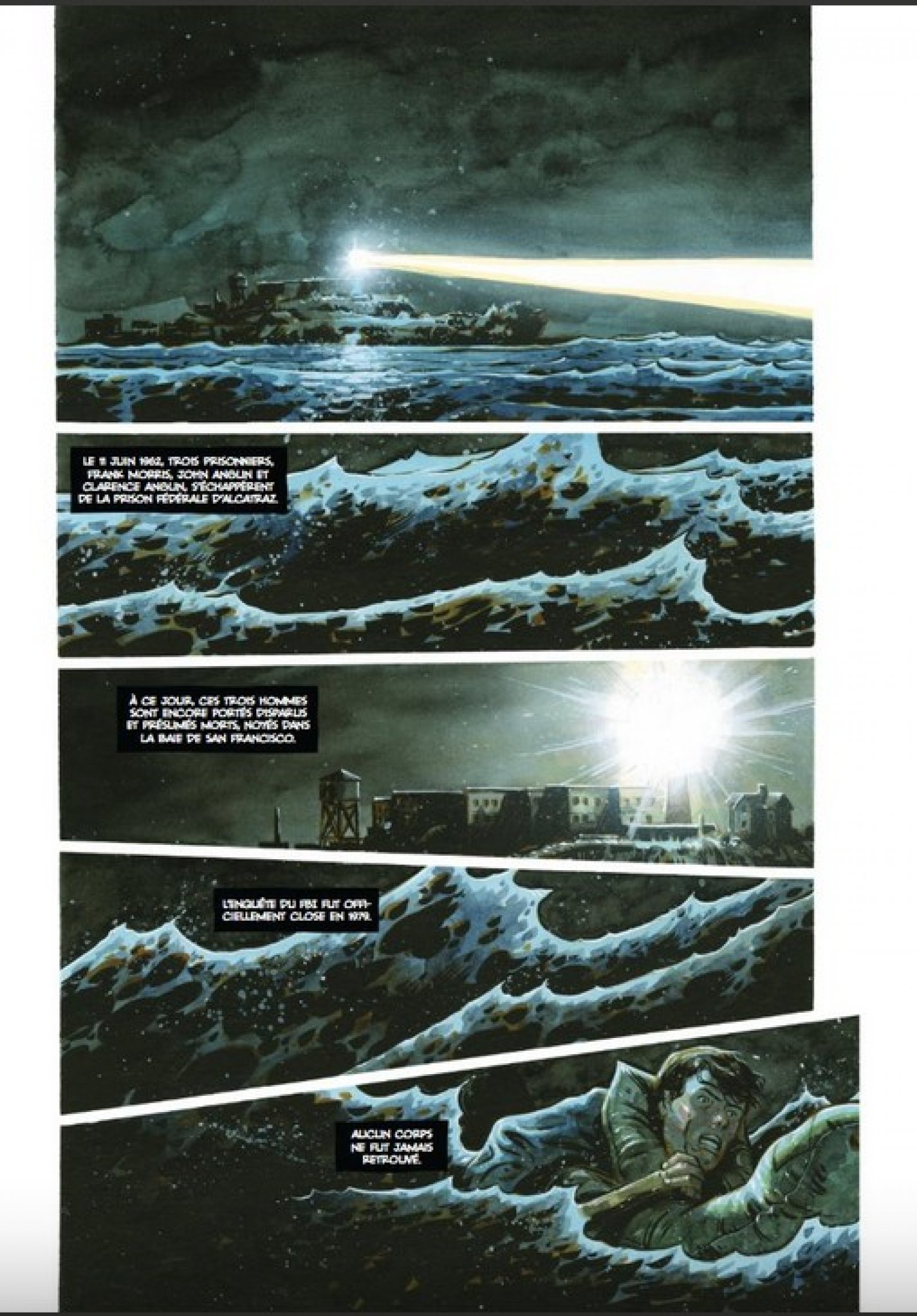 Tout commence le 11 juin 1962, lorsque trois prisonniers — Frank Morris, John Anglin et Clarence Anglin — s’échappent de la prison fédérale d’Alcatraz. Officiellement, ils sont présumés morts, noyés dans la baie de San Francisco. L’enquête du FBI, close en 1979, n’a jamais permis de retrouver leurs corps. Mais ici, les auteurs choisissent une autre voie : et s’ils avaient survécu ?