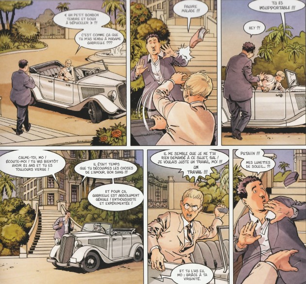 n'allons pas trop vite. Ce cinquième opus s'ouvre sur une fête magnifique, à l’image de celles de Gatsby. La richissime Gabriel Silveira fête son anniversaire et présente son nouveau joujou : Moïse ! Seulement, la fête vire au cauchemar lorsque ce dernier refuse les avances de sa patronne et il faut l'intervention de Salomon pour que la situation retrouve son calme. Par la suite, on va continuer à suivre l'évolution des deux frangins dans le Hollywood d’entre deux guerres. Pragmatique, Salomon vit au jour le jour, s’accommode des velléités antisémites imposées par les dignitaires nazis aux studios Warner. De son côté, Moïse est nettement plus vindicatif et refuse toute compromission. C'est d'ailleurs là que se trouve la solution à la fameuse question : l'intransigeance ! D'une certaine façon,