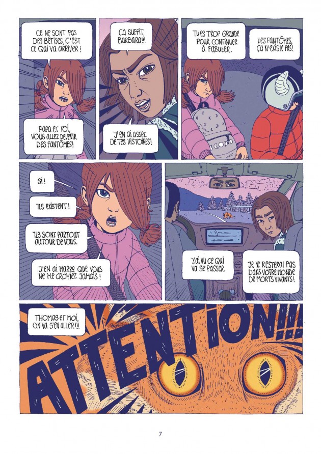 ce premier tome intitulé les reliques des morts-vivants parvient aisément par sa construction à vous glacez le sang. L'atmosphère sombre du récit est palpable et l'autrice parvient aisément a nous embarquer dans cette quête invraisemblable où Thomas va tenter de sauver sa sœur prisonnière d'un univers parallèle. Nous sommes constamment baladés entre rêve et réalité, la mise en couleur quelque peu psychédélique accentue d'ailleurs cette sensation. Le dessin est d'inspiration plutôt manga, fait essentiellement de plans serrés nous pousse à une certaine proximité avec les protagonistes. Allant même parfois jusqu'à nous donner l'impression d'être à leurs côtés. Un premier tome extrêmement bien exécuté, fait de belles originalités surtout au niveau du traitement de la police et des onomatopées. Un premier album qui soulève énormément de questions et qui laisse présager une suite pleine de promesses. Un véritable coup de cœur que je vous recommande sans hésiter.