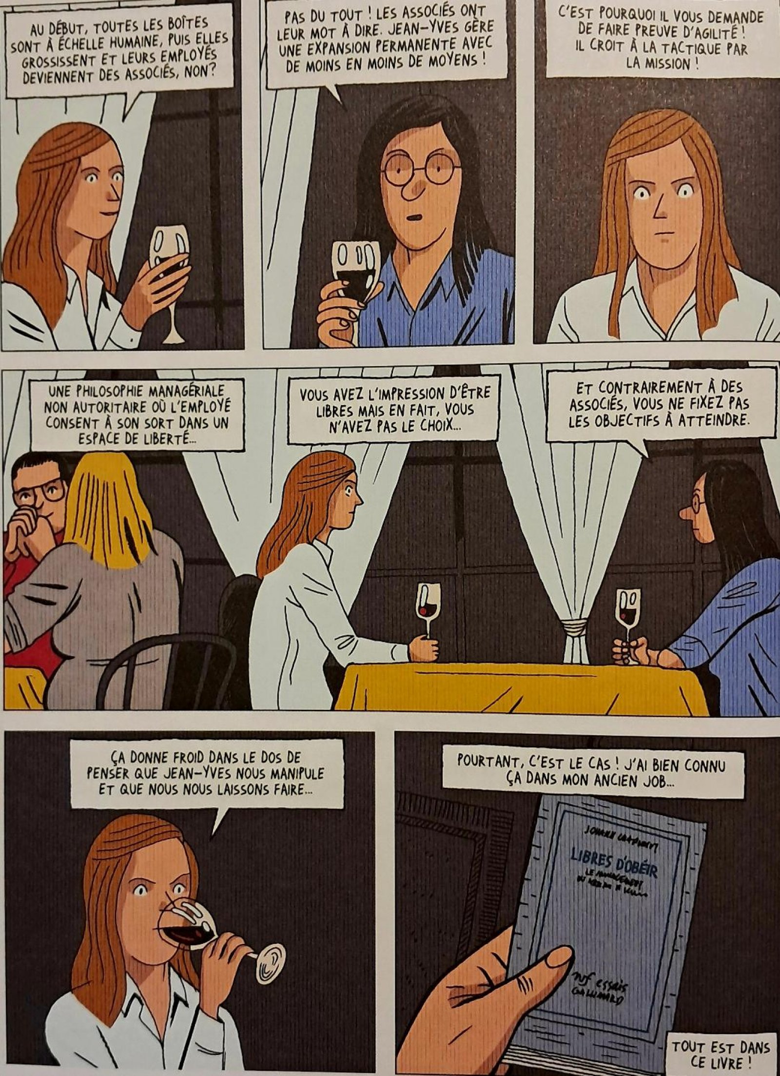 Florence est une employée - une « collaboratrice » plutôt - de la société APPAL dont les bâtiments adoptent une architecture moderne. Le discours de son patron affichant toujours un grand sourire la met mal à l’aise car sous des aspects détendus, il exige un investissement qui soumet la jeune femme à une rude pression. Florence décide donc de se confier à une amie qui a été par le passé victime d’un burn-out. Sa confidente va alors lui conseiller la lecture de Libres d’obéir. Les échanges entre les deux amies au sujet des diverses méthodes managériales d’APPAL vont par la suite servir de fil rouge pour asseoir la démonstration de Johan CHAPOUTOT.