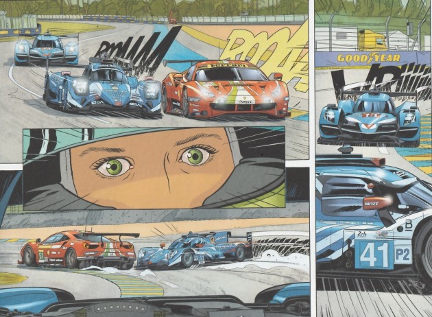 toujours en terrain connu puisqu'ils s'inspirent souvent de personnalités réelles. Mais que serait un album de Michel Vaillant sans les voitures ? Et avec cette édition des 24 Heures du Mans, il y a l'embarras du choix. Presque toutes les plus grands constructeurs, et compétiteurs, sont au départ et on se régale véritablement de ces bolides croqués sous tous les angles et à très haute vitesse. C'est certes classique mais toujours aussi efficace, pour ne pas dire extraordinaire. Surtout, cela enchante les amateurs de belles carrosseries, d'odeur d'essence et de gomme brûlée et du doux ronronnement des moteurs.