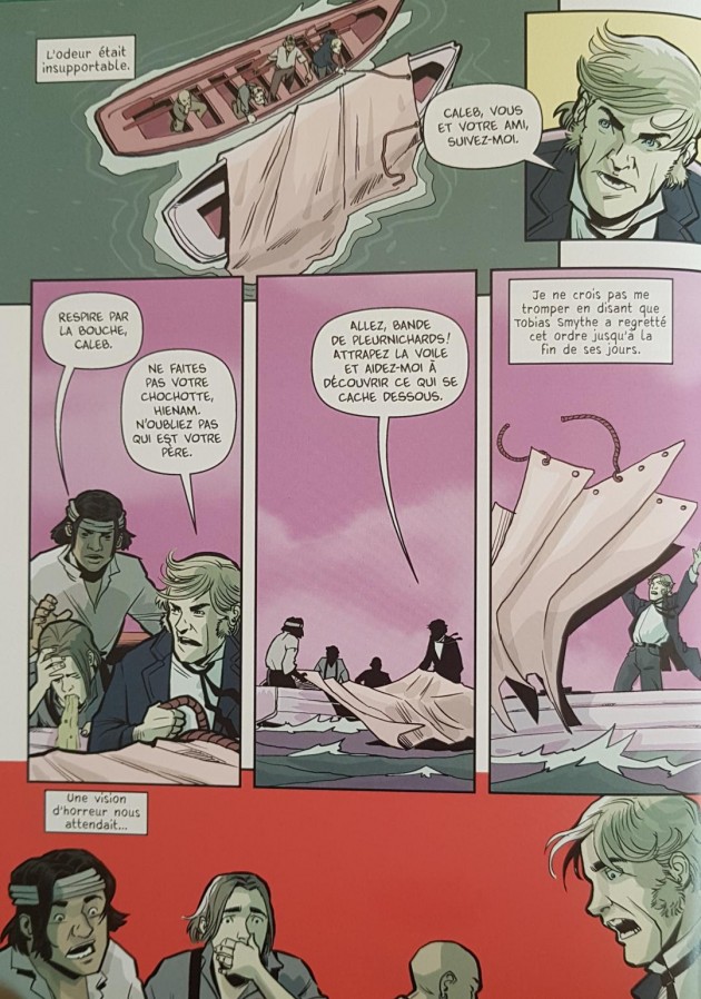 L’auteur chilien s’inspire d’un mythe des Indiens Mapuche pour qui la baleine blanche recueille les âmes des guerriers. Il en profite ainsi pour développer une épopée maritime qui trouve logiquement sa place dans la collection Cabestan de l’éditeur Paquet. Cependant le scénario manque de fluidité avec des passages narratifs qui s’allient maladroitement ou inutilement avec les vignettes. Et si le dessin réaliste de MARTÍNEZ porte honorablement l’histoire avec par exemple Mocha représentée sur plusieurs vignettes pour suggérer sa taille démesurée, le choix des couleurs quant à lui peut surprendre en particulier les couleurs ocre ou violet pour des paysages maritimes.