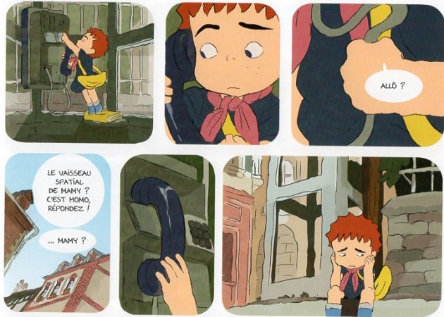 idées. On pleure avec elle, tant de chagrin que de bonheur. Il faut dire que Rony Hotin lui a fait une sacrée bouille. Il n’a pas raté, non plus, les personnages secondaires. Qu’il s’agisse du poissonnier, du SDF, de Françoise ou des bandes de garçons ; tous dégagent autant de charisme que de caractère. L’autre succès de l’album réside dans la narration. Puisqu’elle est attristée, Momo se mure dans le silence et les cases aussi : très peu de bulles, donc. L’essentiel de la narration repose donc sur les épaules du dessinateur. Et à voir le résultat, on a du mal à croire que