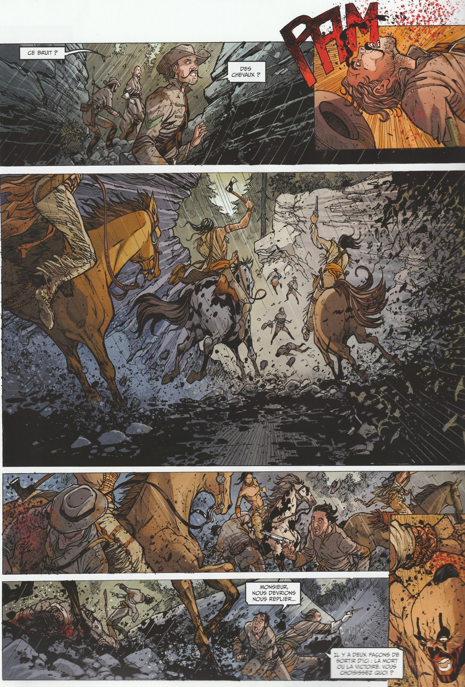 Rien ne va plus ! Les soldats noirs sont prisonniers du capitaine Penham, la trappeuse des Nuhallos et l’équipe de secours est livrée aux coyotes. Ce n’est pourtant que le début ! Une conclusion en apothéose pour ce récit épique tout simplement génial !