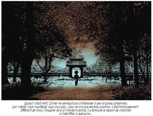 Après un préambule sous forme d’échange de confidences entre les deux auteurs, eux-mêmes adoptés et d’origines coréennes, expliquant la genèse du projet et le côté romancé de ces trois parcours, on commence à découvrir le témoignage de la mère d’Olivier… Les difficultés suite à la mort d’un de leur enfant, le choix d’adopter puis la joie d’accueillir Olivier au sein de leur foyer avec ses deux grandes sœurs.