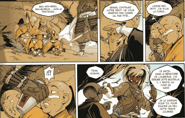 Il est toujours difficile de terminer une série, qui plus est une série à succès, mais Hub avait un plan bien établi dès le départ (5 diptyques correspondant aux 5 éléments traditionnels japonais) et il a su éviter tous les écueils du genre. Ce dernier récit ne fait donc pas dans la surenchère épique, pas plus qu'il ne se force à un happy-end convenu. Après tout, le vide est l’élément qui invite à l'introspection, et il est logique que son cycle nous révèle le passé de nos héros : celui d'Okko bien sûr, mais aussi ceux de Noshin et Noburo. Ce récit flash-back occupe la plus grande partie des 64 pages de l'album, il est en lui-même très intéressant avec des révélations inattendues (par moi du moins) et il apporte de la profondeur à des personnages que l'on croyait bien connaître. Il se termine sur une note douce-amère bienvenue tant on est triste de fermer le dernier album d'une si belle série mais satisfait de la voir maintenir son haut niveau de qualité jusqu’au bout.