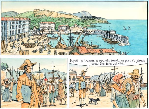 Ferrandez excelle dans l’art de mêler fiction et réalité historique. Le scénario, dense et documenté, restitue avec beaucoup de précision le contexte politique et social de la fin du XVIIIe siècle : la chute de Nice sous la Révolution, les rivalités à Malte, et surtout, la campagne d’Égypte de Bonaparte, où se croisent ambitions militaires et rêves scientifiques.