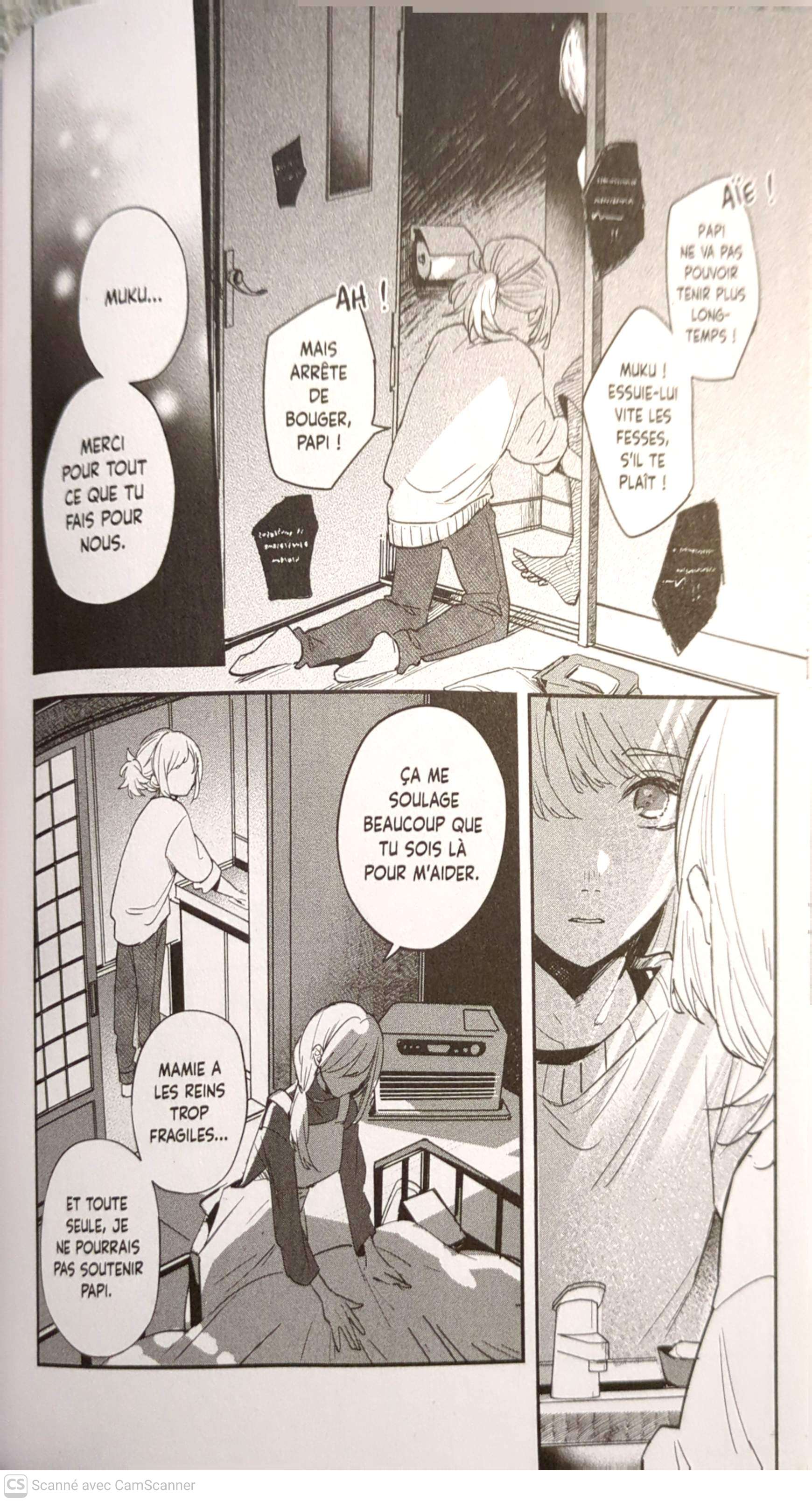 Haruka Chizu traite cette thématique avec une justesse bouleversante. Elle ne tombe pas dans le mélodrame facile, mais décrit avec précision l'emprise psychologique et le sentiment d'obligation qui emprisonnent l'héroïne. Le trait de l'autrice, à la fois doux et expressif, parvient à transmettre toute la mélancolie de Muku, mais aussi la chaleur qui émane de ces retrouvailles inespérées.