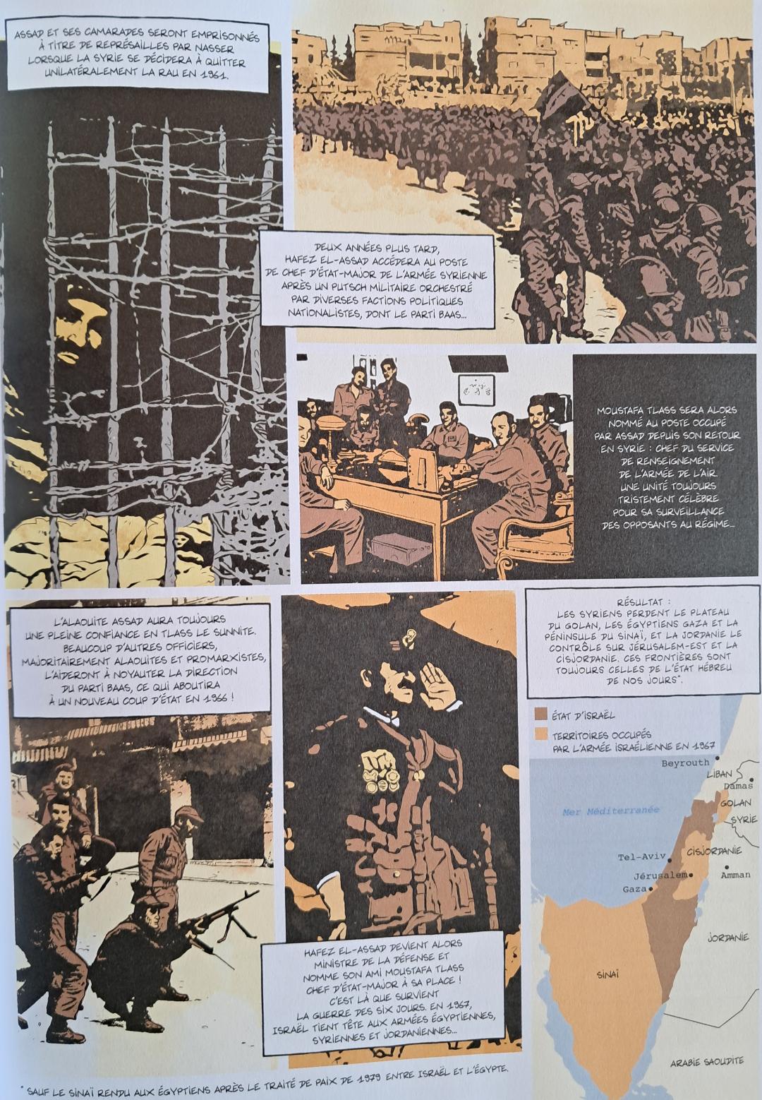 Ce roman graphique est le fruit d’un travail très documenté nécessitant de nombreux prérequis pour appréhender justement cette histoire complexe et tumultueuse. On peut ainsi regretter un manque de vulgarisation qui aurait pu permettre de toucher un lectorat plus conséquent avec davantage de fluidité dans le récit, mal atteinte même avec un découpage de l’ouvrage en vingt chapitres. Il n’en demeure pas moins que la « diplomatie terroriste » entre la France et la Syrie est minutieusement traitée comme la mort du premier ministre libanais et ami de Jacques CHIRAC, Rafic HARRIRI, lors d’un attentat-suicide spectaculaire en 2005. Par ailleurs, le dessin réaliste et parfois presque photographique de Nicolas OTÉRO sert uniquement à illustrer le propos contribuant alors à un manque de dynamisme dans les planches.