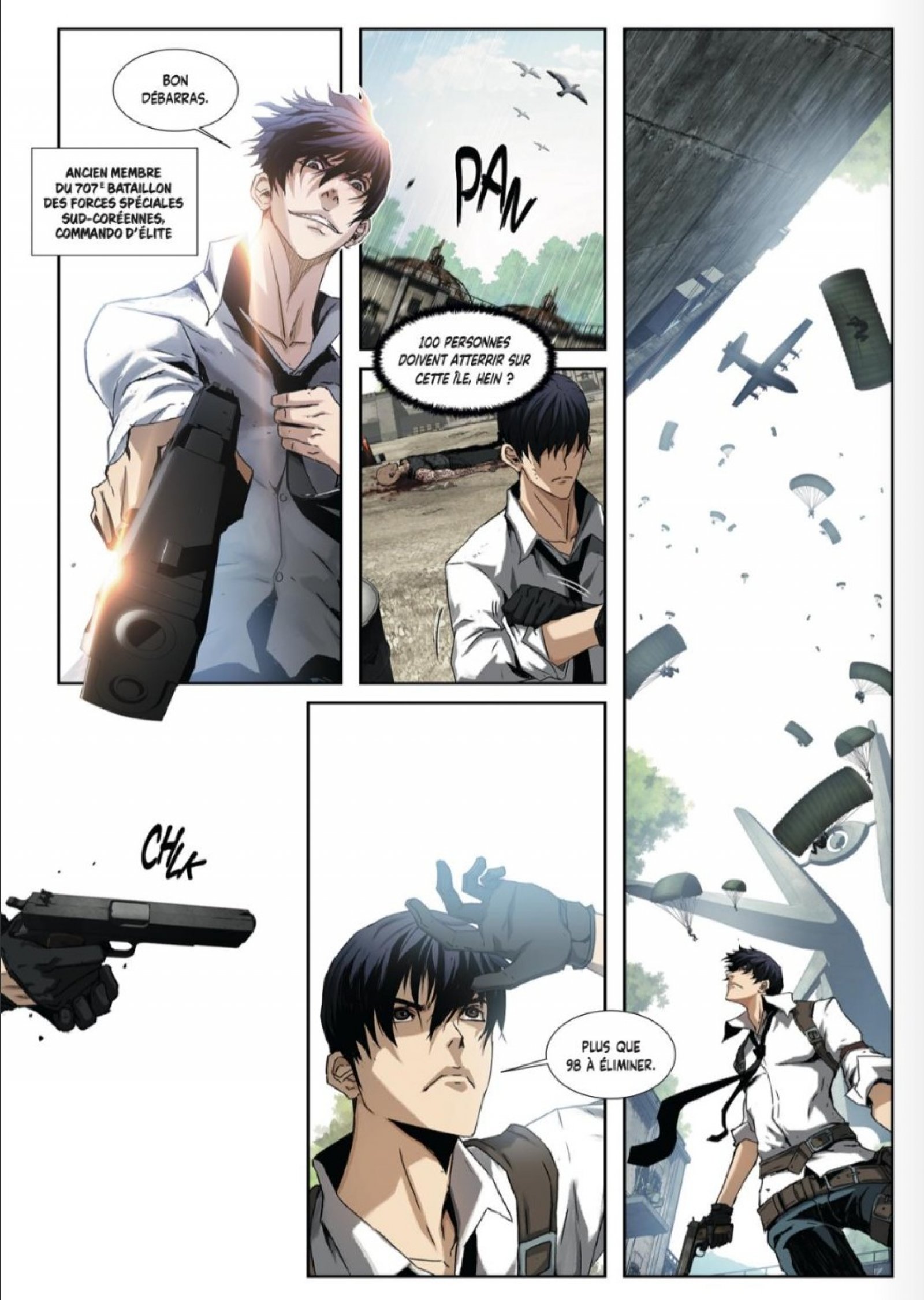 Le concept reste fidèle à l’ADN de la franchise : 100 participants sont largués sur une île isolée. Un seul en ressortira vivant. Mais là où le jeu vidéo privilégie le gameplay, le scénariste Eun HYEONG choisit d’explorer la psychologie des "joueurs". On y suit des individus poussés dans leurs derniers retranchements, où chaque alliance est précaire et chaque zone de sécurité une cible potentielle. Ce premier tome se concentre sur l’amorce de ce cauchemar éveillé, introduisant des protagonistes dont le passé et les motivations justifient leur présence dans ce tournoi macabre.