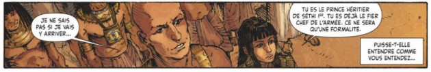 Le scénario de Wyctor est agréable et nous permet d’en apprendre plus sur ce si célèbre pharaon. D’abord général pour l’armée de son père, il continue à développer ses talents militaires une fois au pouvoir avec de nombreux triomphes. Mais l’auteur, aidé par l’historien Juan-Carlos Moreno Garcia nous permet également d’en apprendre plus sur la vie en Égypte au XIIIème siècle avant JC, notamment sur l’organisation sociale et politique du pays.