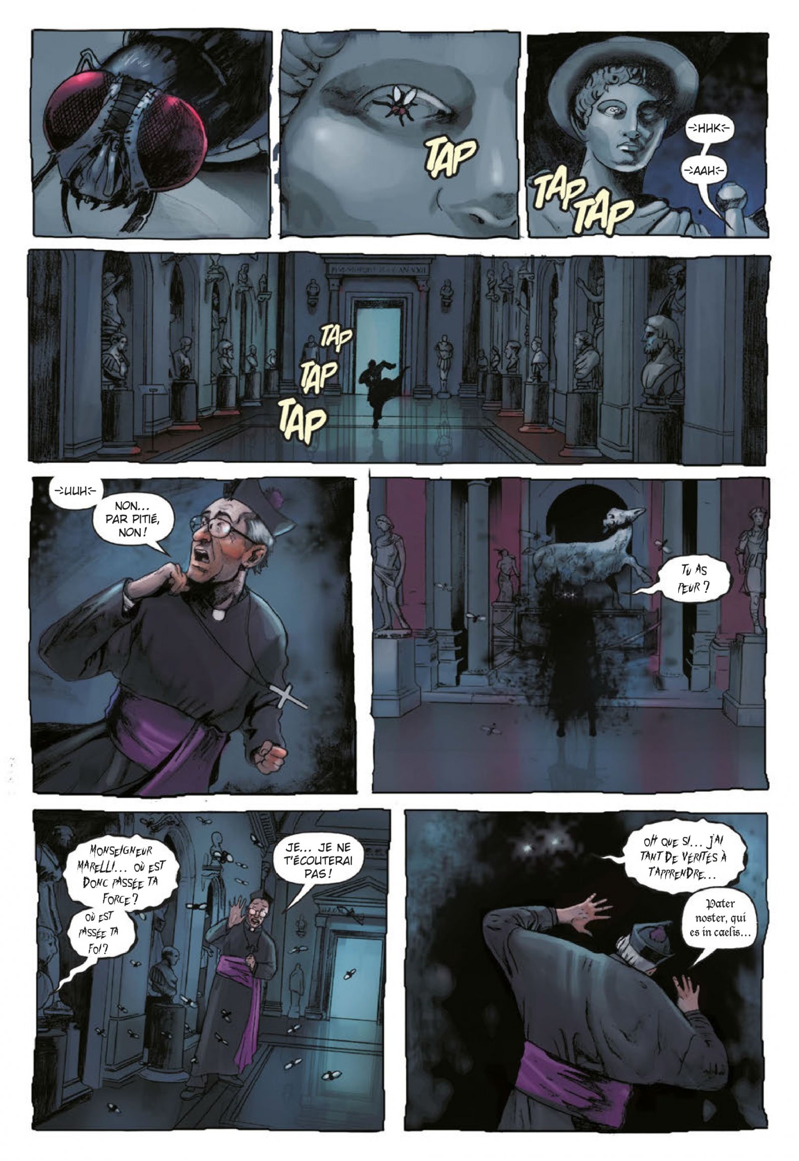 Le scénario et surtout les artifices, les codes sataniques n’ont en soi rien d’original mais cette absence d’originalité est très vite balayée par le lieu où se déroule l’histoire puisque c’est le Vatican lui-même qui est attaqué et donc par extension le Saint Père. L’intrigue en revanche est bien ficelée et sans vous dévoiler les dessous des responsabilités, le scénariste pose une histoire antérieure que le père Brennan va découvrir sous forme d’enquête. Cette histoire va donner de la matière à la possession satanique et démontrer que rien n’arrive par hasard. Autant dire que l’Église en prend pour son grade et que son image et les rumeurs sont exploitées au maximum.