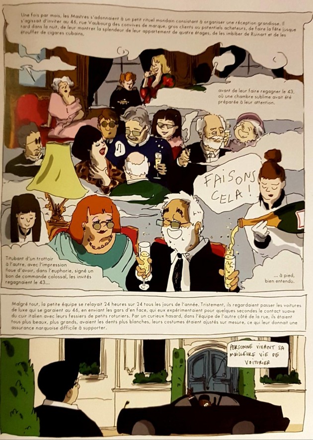 Après avoir présenté les différents quartiers qu’il s’agisse de celui de l’usine la Fabrique et de ses maisons pour les familles des ouvriers, du quartier historique la Coquille dont le canal central s’assèche en hiver ouvrant une artère fréquentée pour gagner du temps, du quartier cossu de l’Opéra aussi ratiboisé que le sont ses habitant·e·s, ou de la forêt de la Butte, l’artiste nous fait partir à la rencontre de certain·e·s de ses habitant·e·s. Cette topographie nous ouvre ainsi la voie à une géographie sociale permettant leur découverte. On suit alors le gamin Denis contraint de rendre le chien qu’il avait recueilli avec son ami Denis, l’acariâtre concierge Fournier adorable mère et despote héroïque pour son immeuble, ou le serveur Sergio insupportable avec les clients occasionnels mais qui s’en veut d’avoir participé à l’abandon de la mère du héros de la ville pendant la guerre et qui a inspiré le prénom de bon nombre de ses habitants, Denis CRESSON.