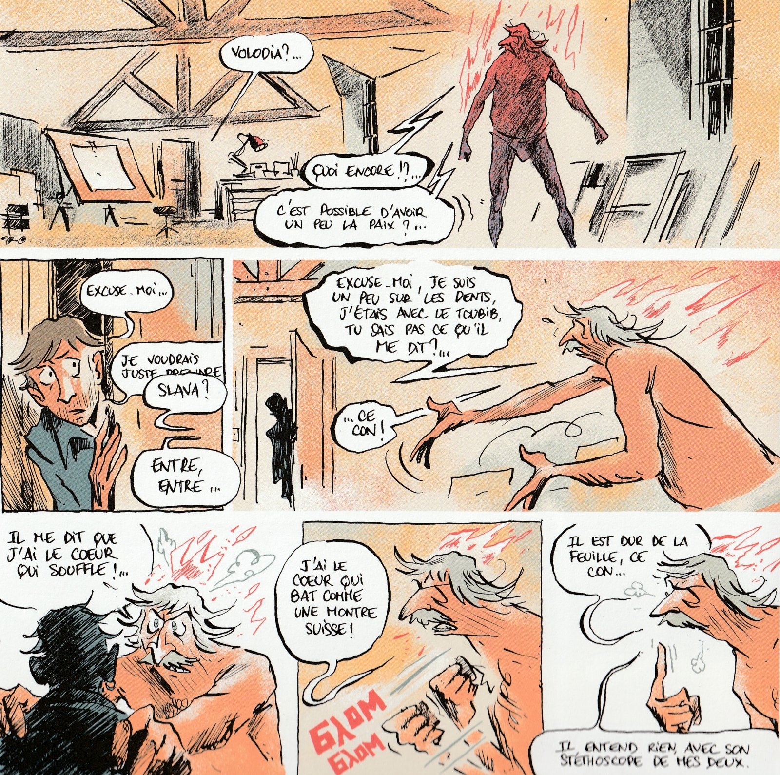 A écouter l’actuel maitre du Kremlin, la chute de l’URSS serait le pire événement du XXe siècle. Il est vrai que ce monde a été jeté en pâture au capitalisme le plus sauvage et que les gens ont été livrés à eux-mêmes et à ce que l’humanité fait de plus inhumain. Inutile de dire que, plus de trente ans plus tard, le traumatisme est toujours très fort en Russie comme dans les anciennes démocraties populaires ; fussent-elles entrées dans l’Union européenne. Pour mieux faire nous faire comprendre la situation, Pierre-Henry Gomont a imaginé le triptyque Slava. Dans ce 3e et dernier opus, on retrouve les personnages qui ont fait le succès de la série. Lavrine est devenu un homme riche, mais seul. Volodia s’échine à produire un minerai que Nina n’arrive pas à vendre. Slava joue les mécaniciens la journée et les peintres du dimanche la nuit. Mais il est surtout l’indéboulonnable soutien de Nina dans cet immonde chaos qu’est l’économie russe ! C’est alors qu’un rayon de lumière apparaît. Nina a trouvé un miraculeux acheteur ; Slava accepte d’exposer et, contre toute, il vend ! Même Volodia retrouve la santé ! « Nous sommes en Russie et chez nous, les histoires ne finissent pas bien » car le scénariste nous réserve un final explosif, entre rires et larmes. Bien guidé par la voix off de Slava, le lecteur suit chaque personnage, chacune des situations, chaque décision et ses conséquences. C’est extrêmement addictif car les personnages sont très charismatiques et attachants. Ils n’ont pas non plus leur langue dans leur poche. Les dialogues sont savoureux, à mi-chemin entre les Tontons flingueurs et le Parrain. Le même Pierre-Henry Gomont fait le choix d’un trait extrêmement vif pour mettre en image ce triptyque. Ce graphisme au service de la narration apporte un souffle supplémentaire aux intrigues. On sent la violence physique comme psychologique. On a envie de rire à certaines situations tant elles nous semblent caricaturées. On a envie de pleurer devant cette détresse palpable. La colorisation vient parachever ce petit bijou de tragi-comédie noire à souhait.