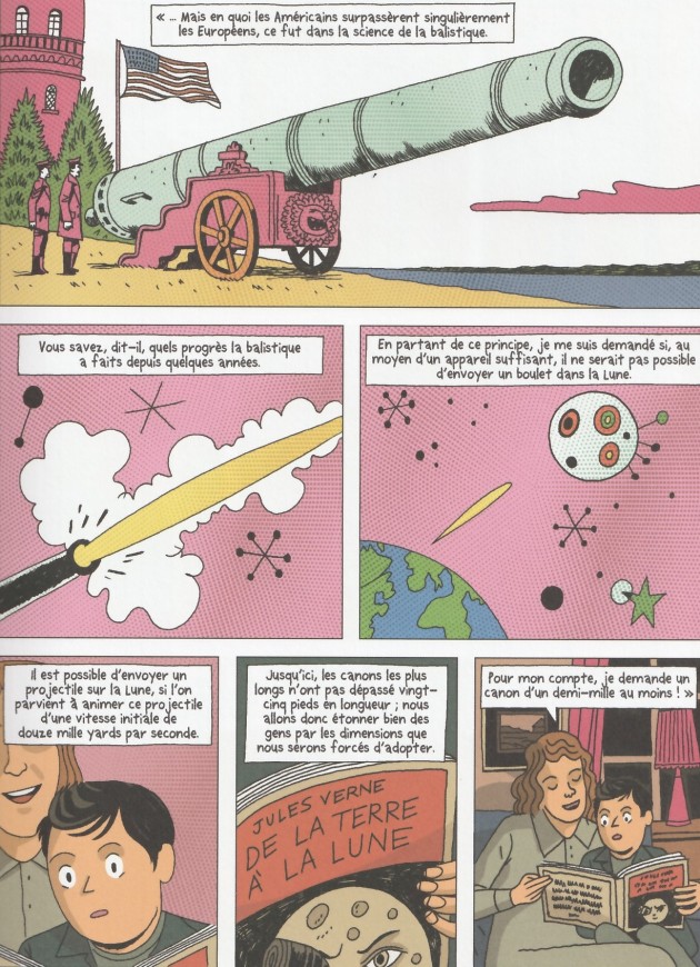 De la Terre à la Lune qui le marque le plus. Ce sont surtout les canons qui l’impressionnent. Il se met alors en tête de mettre au point un canon qui expédierait le courrier d'un bout à
