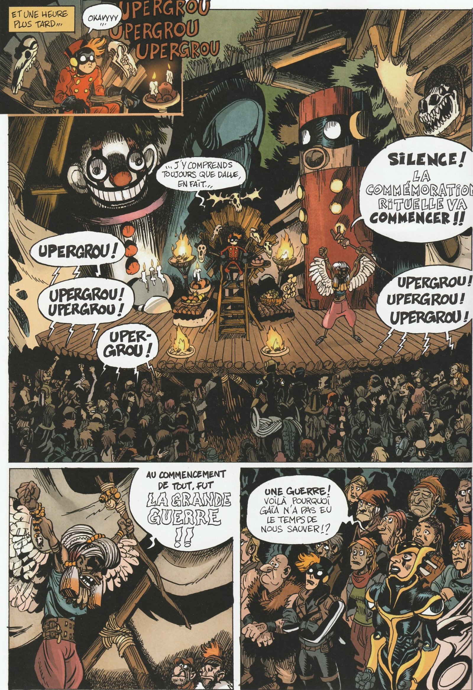 À la surprise générale, SuperGroom, le vrai faux super-héros franco-belge a survécu à la WOW, la guerre olympique. Mieux, si la compétition a vu la victoire surprise de la Centaure, SuperGroom est véritablement celui qui a le plus marqué les esprits. Du coup, Spirou, qui se cache derrière le masque du super héros, décide de prendre un peu de recul et de laisser toute la lumière à l’entrepreneuse et à son nouveau projet : GAIA, une IA suffisamment puissante pour résoudre tous les problèmes liés au dérèglement climatique. Un soir pourtant, il découvre une invitation à se rendre à Nova Bruxelles. Bien que flairant le traquenard, notre super héros se rend sur place. C’est alors qu’apparait la première surprise : le chasseur, qu’on croyait morte est toujours bien vivante. La seconde est, qu’ensemble, ils vont effectivement tomber dans un piège ! GAIA les congèle avec les proches de la Centaure pour au moins 200 ans ; le temps qu’elle réussisse sa mission. Sauf qu’à peine 50 ans plus tard, tout le monde revient à la vie et ce qu’ils découvrent à de quoi glacer le sang. SuperGroom n’a plus le choix : il va devoir être courageux pour sauver le monde, une nouvelle fois !!