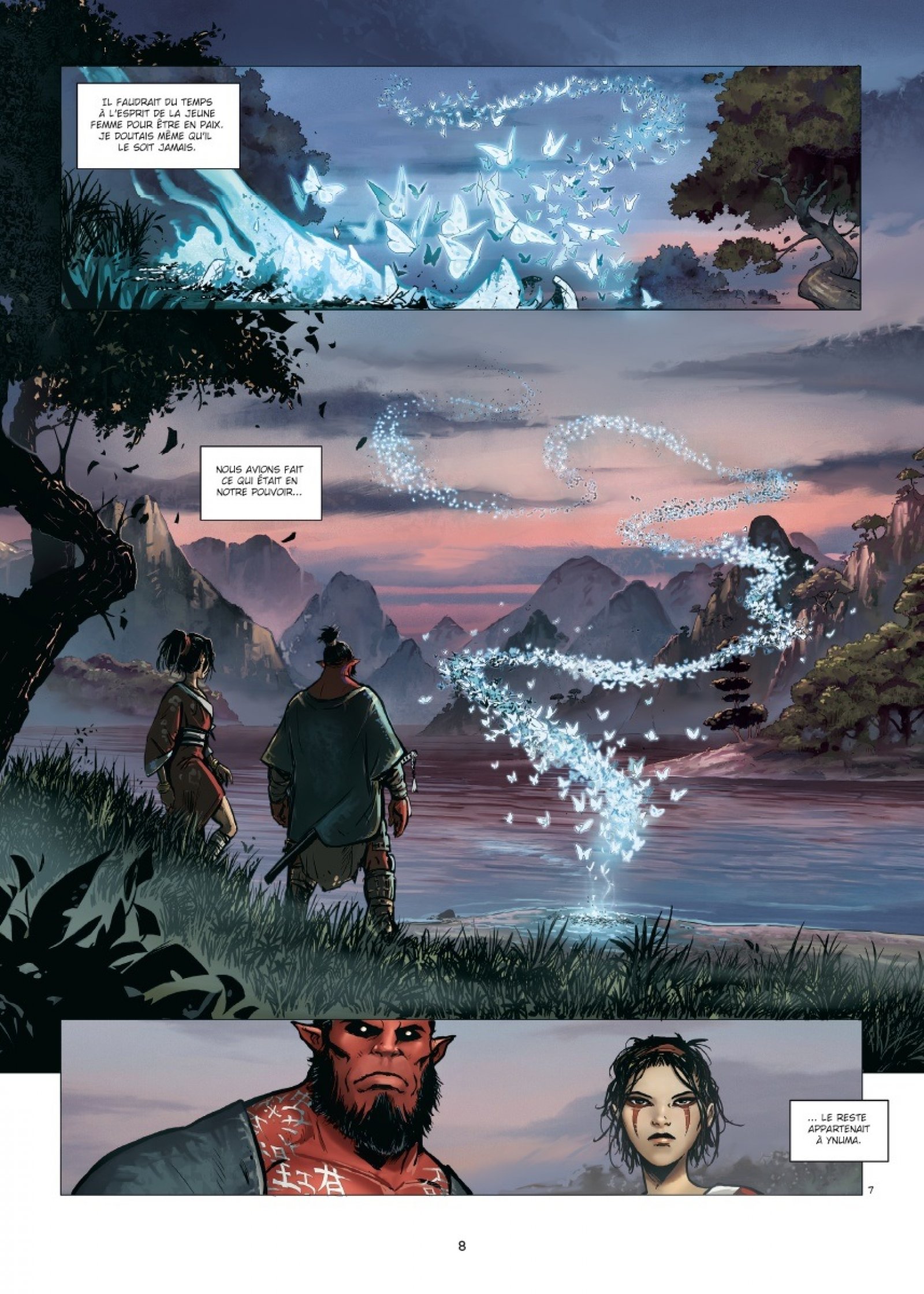 L’album séduit aussi par sa mise en scène claire, son découpage aéré et sa capacité à équilibrer action, émotion et mythologie. Le lecteur en ressort avec l’envie d’en savoir plus sur Zhao, ce samouraï à la peau écarlate, et sur les terres encore inexplorées d’Ynuma.