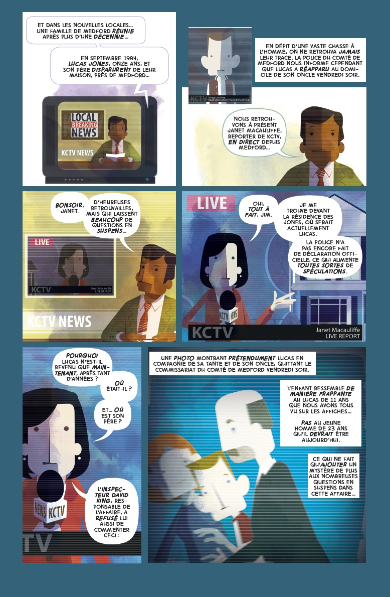 Un jour, Lucas Jones réapparaît. Disparu depuis douze ans, il n’a pas vieilli d’un jour, et physiquement,il paraît toujours avoir onze ans, ce qui trouble tout le monde. Son père, parti avec lui, n’est jamais revenu. Lucas parle peu, semble ailleurs, comme s’il était encore coincé entre deux réalités.