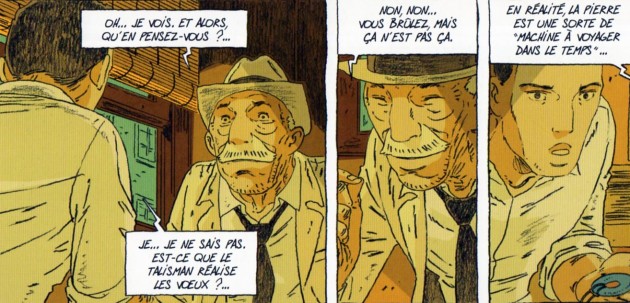 Cet album confirme tout le talent de Cyril Bonin. Coté scénario d’abord, le rythme est parfait : quelques pages suffisent à dresser le portrait du héros, puis on plonge dans l’aventure! Par la suite, les retours en arrière sont toujours judicieux et pertinents, alors qu’on aurait pu craindre davantage de platitude. Le questionnement philosophique sur le passé, le présent, le futur, la vie et l’amour se pose simplement, sans qu’on s’en rende compte. Et on réfléchit encore longtemps après avoir refermé l’album ; sans que cela devienne entêtant ; rassurez vous.