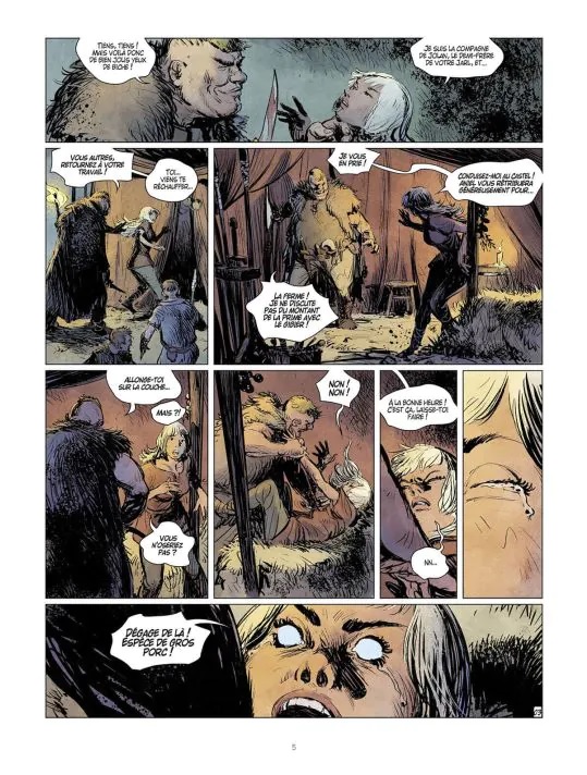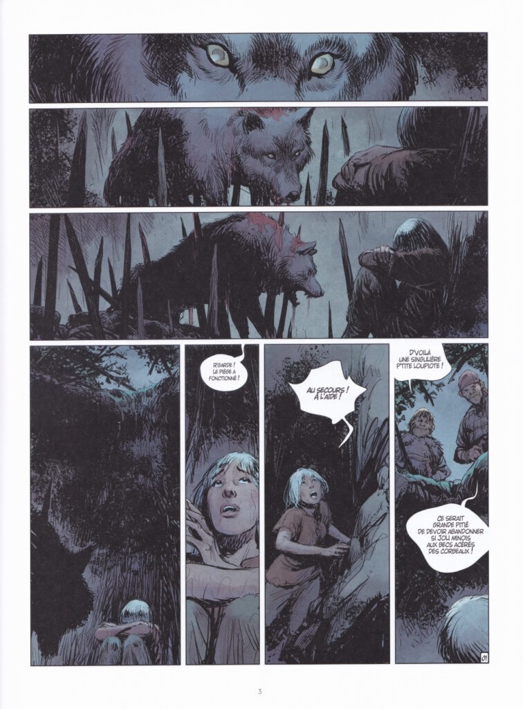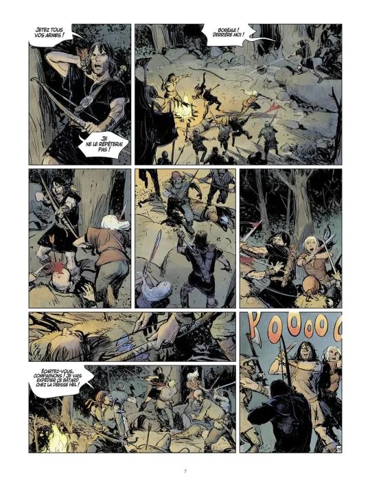 Coincée au fond d’une fosse, Boréale est « secourue » par des traqueurs de gibier. Mais elle n’est pas sauvée pour autant : les hommes comptent l’emmener dans leur village pour « s’amuser avec elle » contre sa volonté. Heureusement, Boréale n’est pas sans ressources ni sans pouvoirs. D’autant que Thorgal vient à son secours et affronte les giboyeurs jusqu’à ce qu’une corne retentisse : les hommes du Jarl arrivent, appartenant à un certain Aniel de Valnor. Thorgal a beau expliquer qu’Aniel est son fils et qu’il n’est pas un vagabond, il n’est pas entendu et se retrouve jeté dans les cachots du castel, en compagnie de Boréale.
