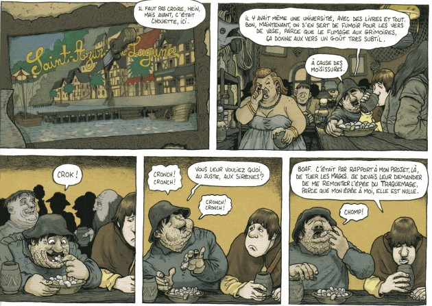 fantasy rurale (profond) fait qu’on s’amuse tout en réussissant à être surpris. Le dessin illustre à merveille ce genre avec des personnages aux tronches inoubliables et un mélange de réalisme champêtre et de bestiaire fantastique inspiré.