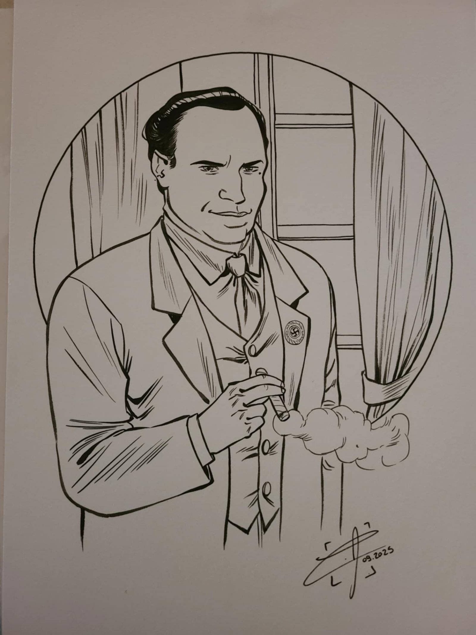 Les dédicaces sont réalisées aux crayons gris, puis encrage à l'encre de chine