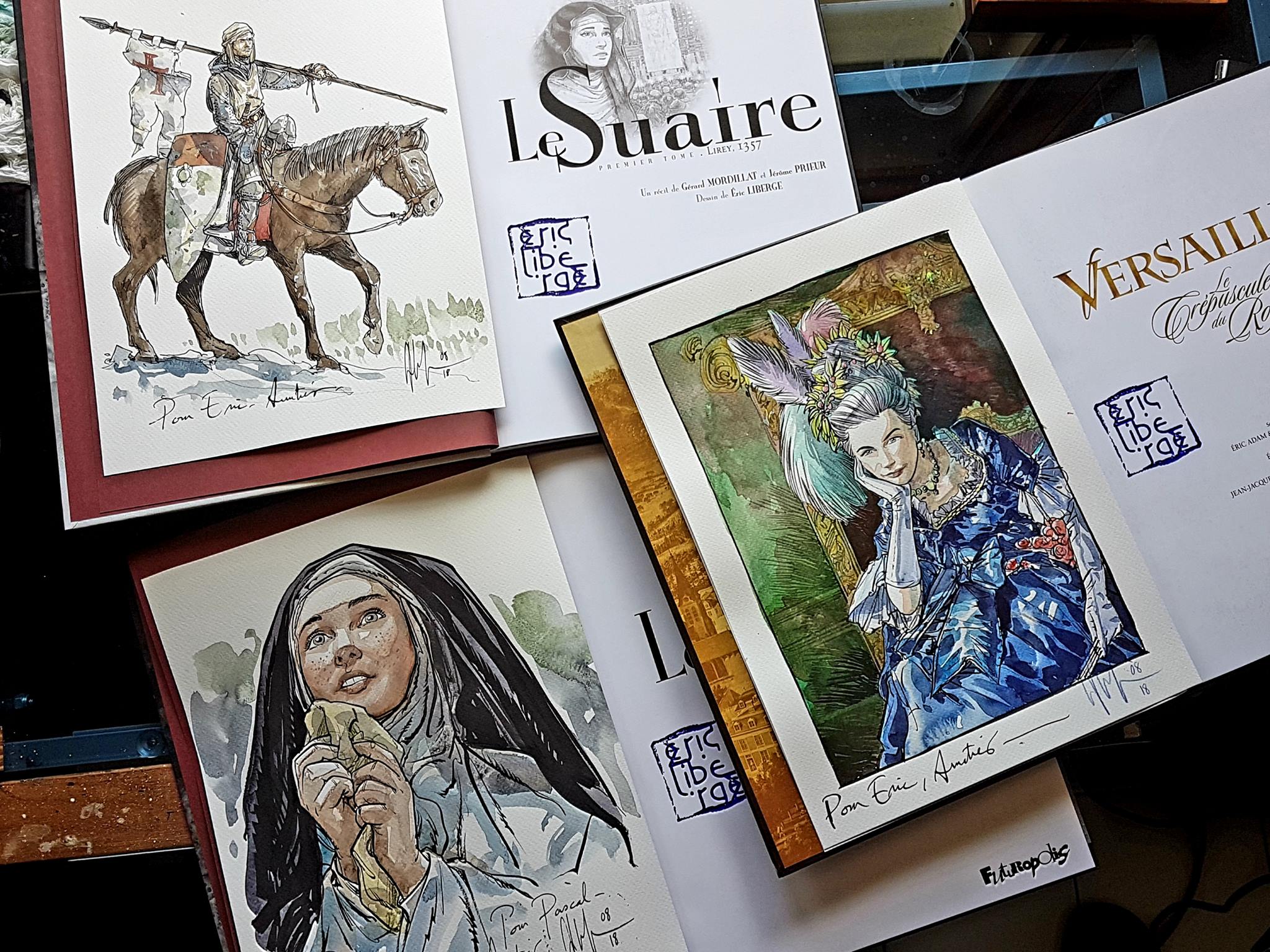 Les dédicaces sont réalisées à l'aquarelle et au lavis
