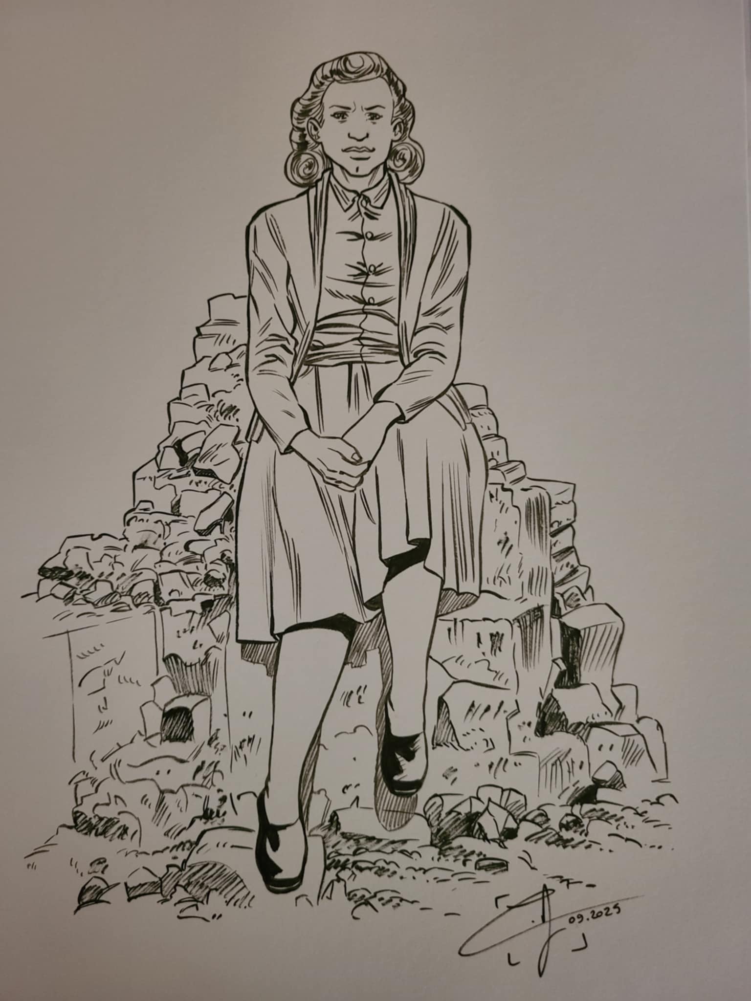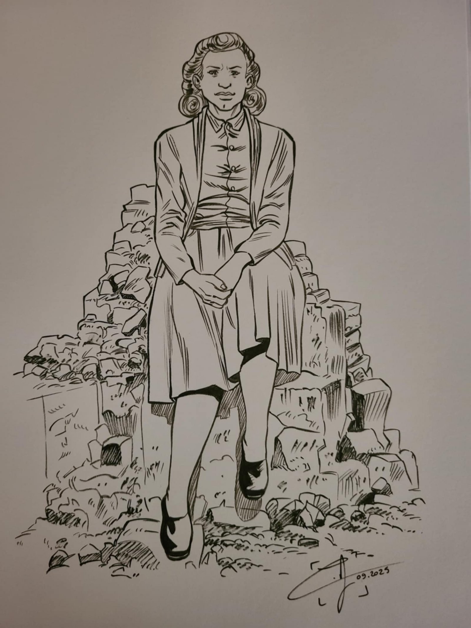 Les dédicaces sont réalisées aux crayons gris, puis encrage à l'encre de chine