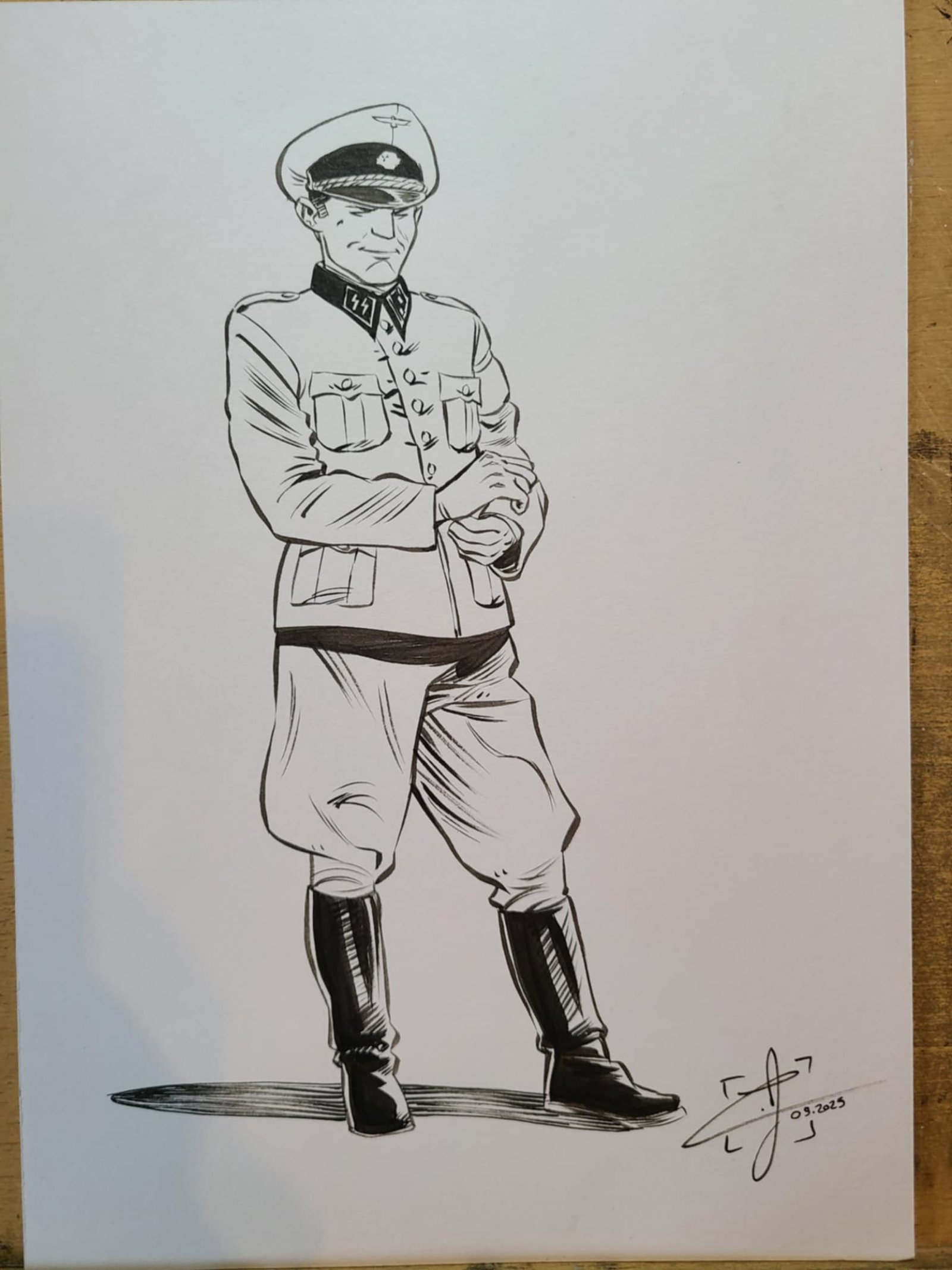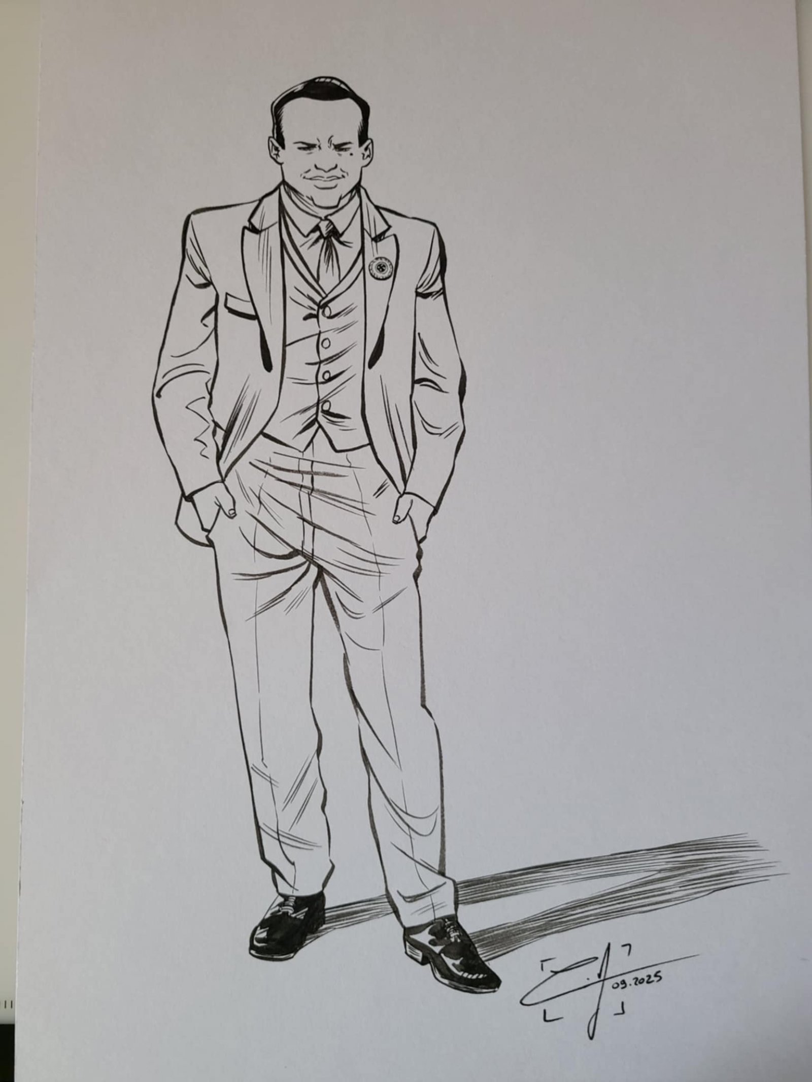 Les dédicaces sont réalisées aux crayons gris, puis encrage à l'encre de chine